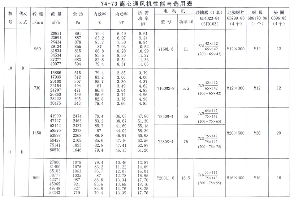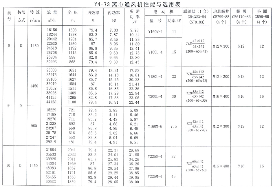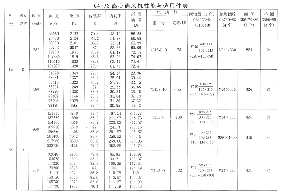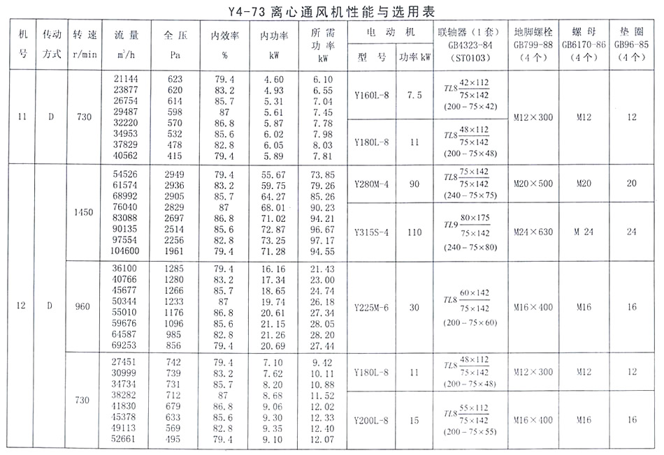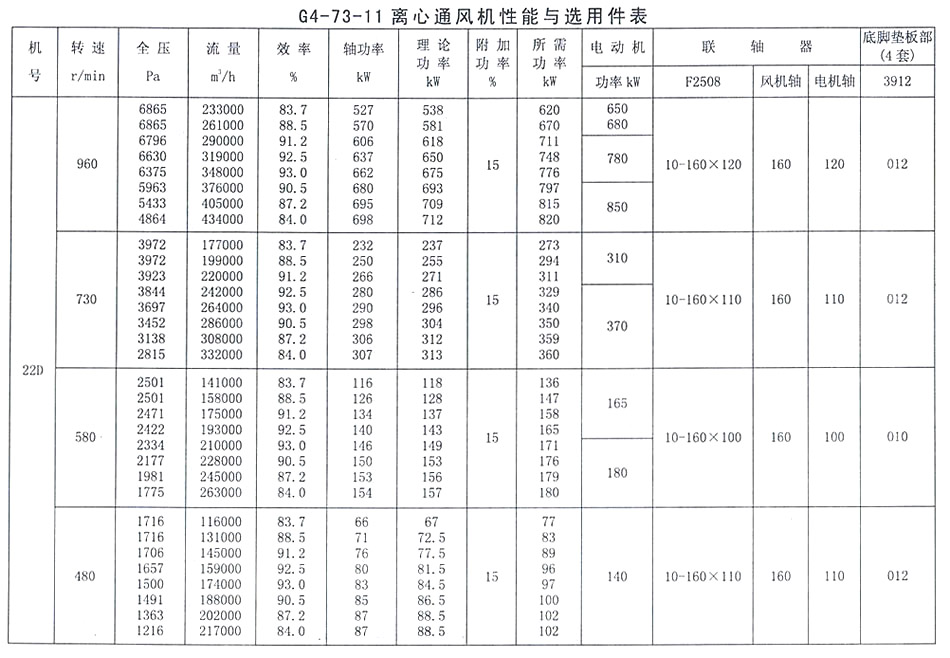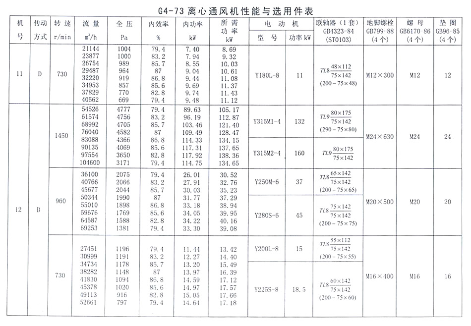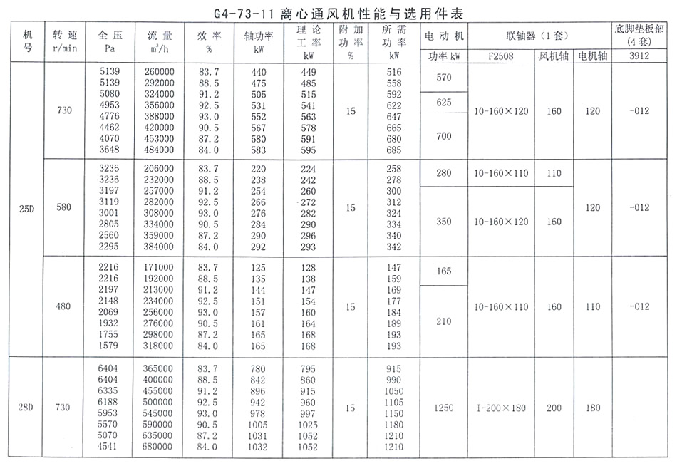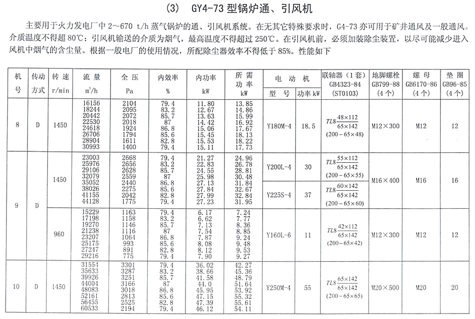 G4-73與Y4-73型鍋爐通、引風機適用于火力發電廠中2~670T/h蒸氣鍋爐的通、引風機系統。在無其它特殊要求時,G4-73亦可用于礦井通風及一般通風。