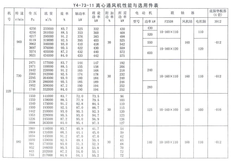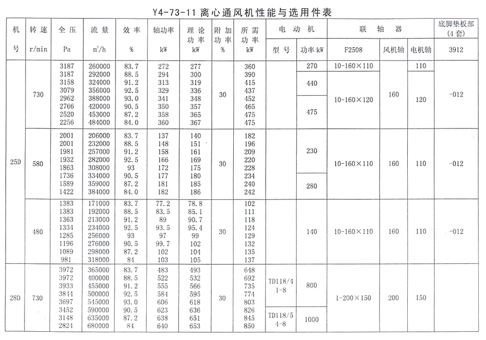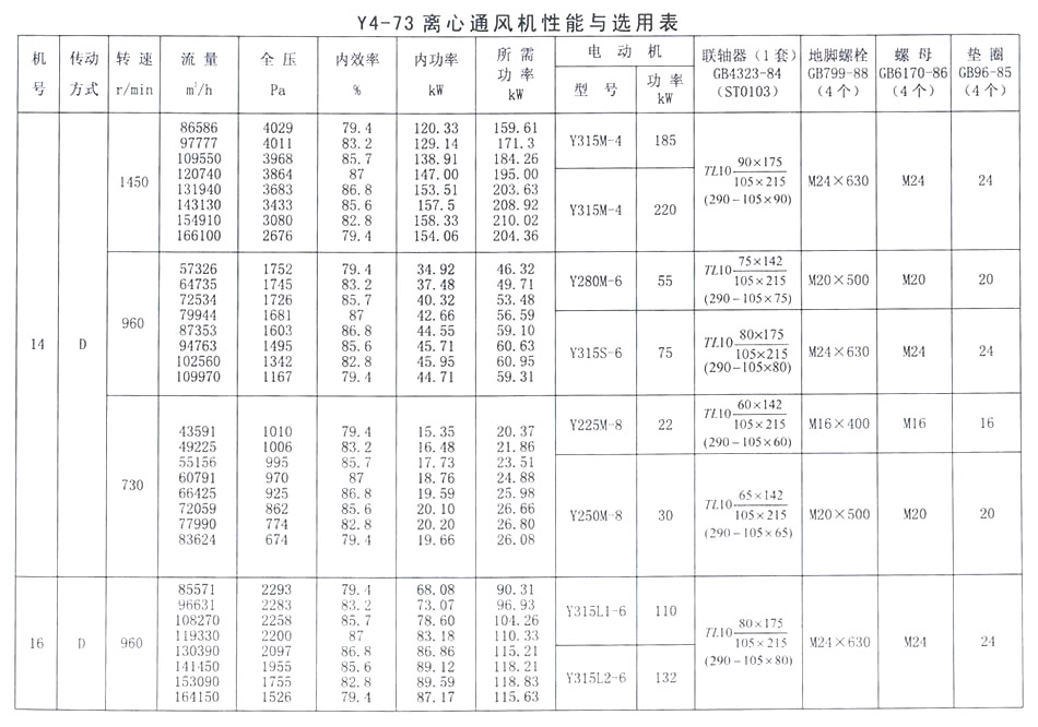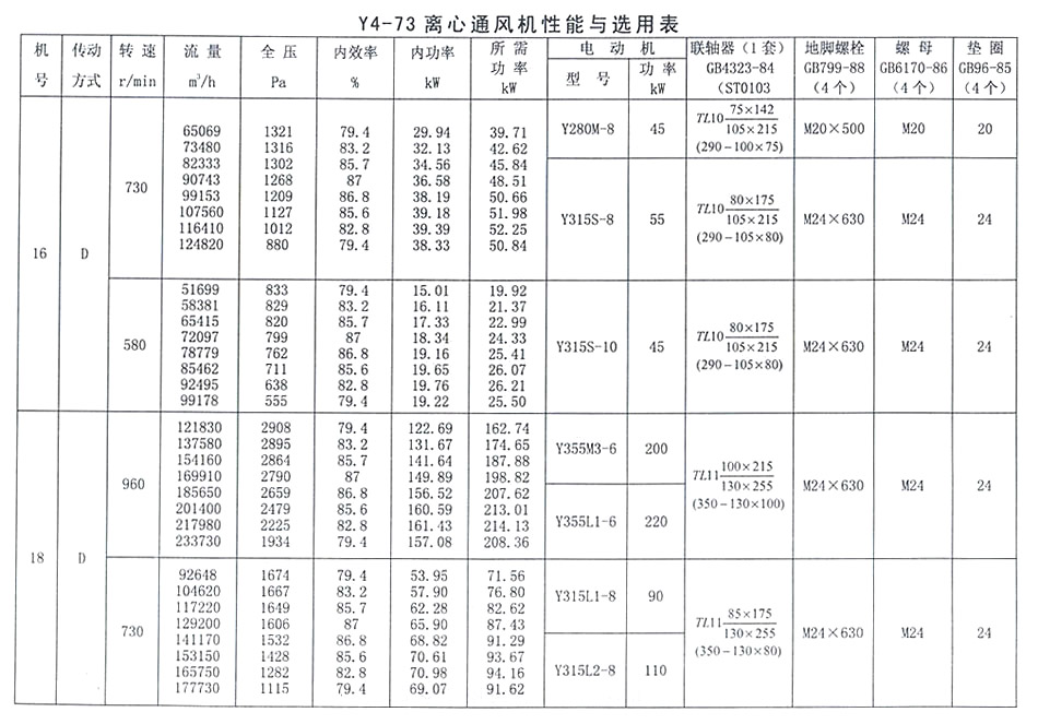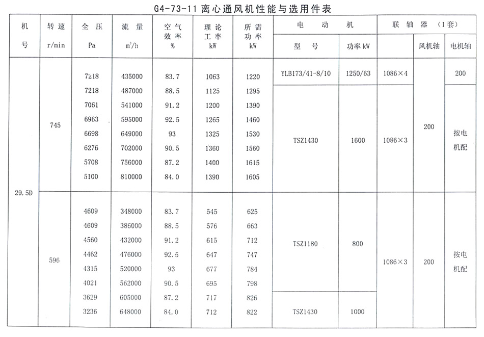 通風機輸送的介質為空氣,最高溫度不得超過80℃;引風機輸送的介質為煙氣,溫度不得超過250℃。通風機與引風機制成單吸入、各有№8~28共12個機號。