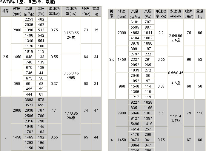 SWF(A)-I/II/III型混流風機