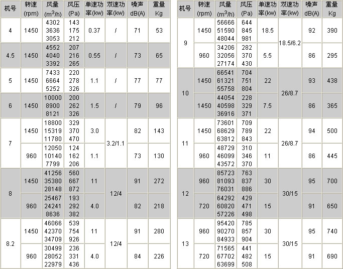 機號:3#-13# 風量:3000-95420m3/h 全壓:143-11200Pa